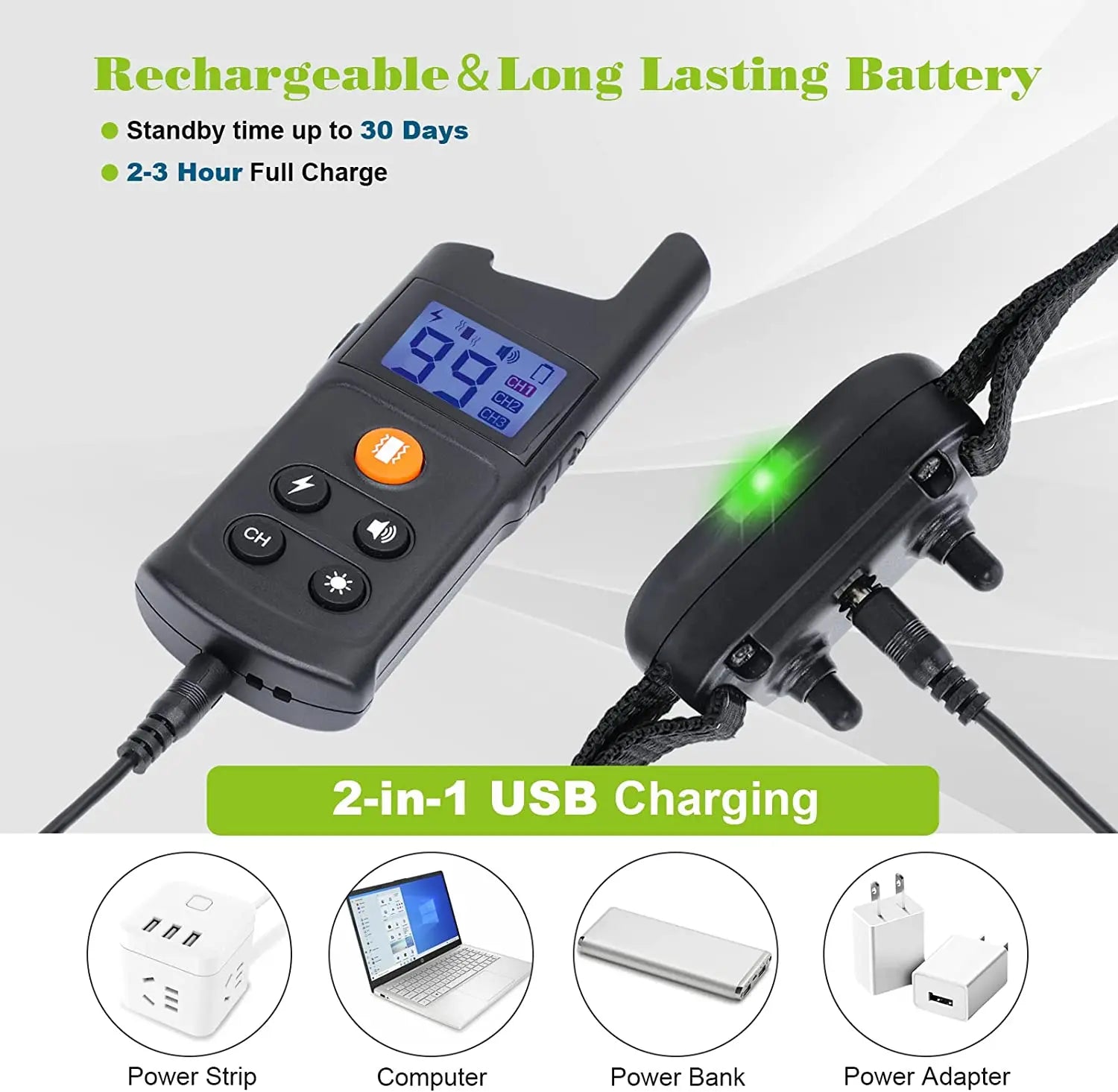 - Beep and vibration provide gentle, immediate feedback to guide behavior, with the shock feature available only as a last-resort option after proper training.
